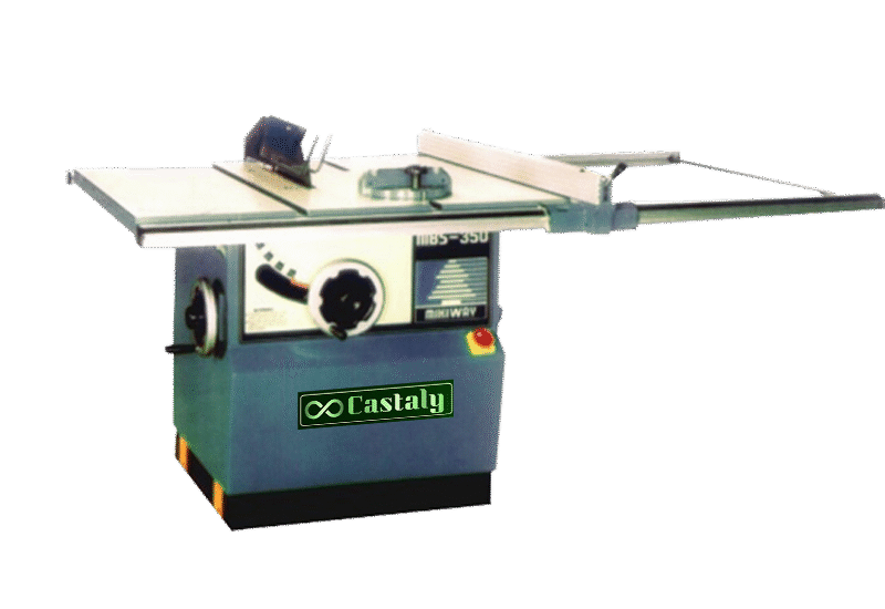 Herramienta eléctrica para carpintería estacionaria para trabajar madera, que tiene una hoja circular montada en un eje que sobresale a través de una mesa. La sierra permite realizar cortes rectos, precisos y rápidos en materiales como madera.